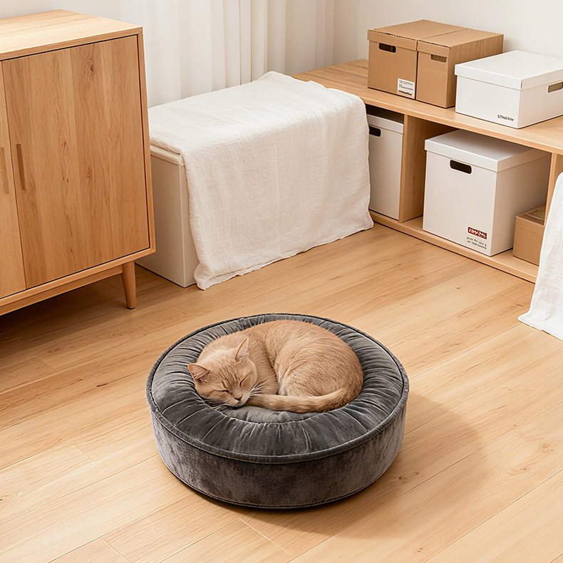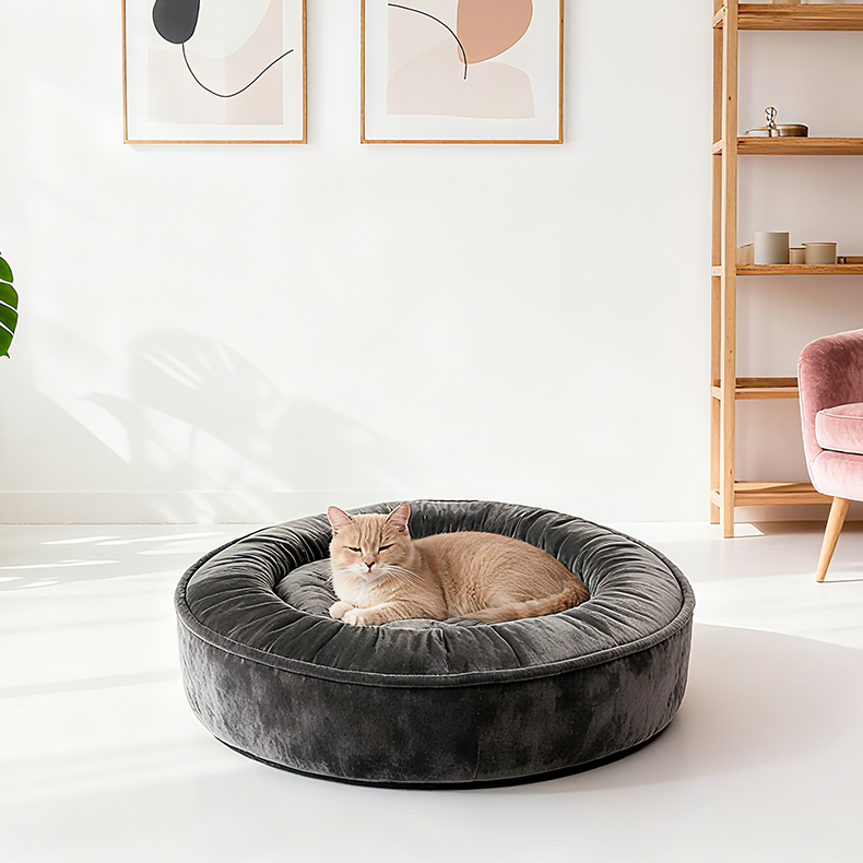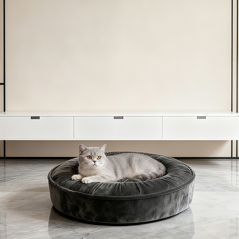 "Healing Fluffy Pet Nest" : Low-saturation grey tones combined with round silhouettes, simple and warm, easily blend into Nordic and modern home styles, instantly transforming into an aesthetic item that enhances the quality of the space. The high-density plush fabric is superimposed with three-dimensional quilting technology, providing a soft and fluffy touch. It forms an air-locking layer, keeping pets warm continuously in autumn and winter and allowing them to enjoy a comfortable sleep. The circular high edge is filled with high-elasticity material, conforming to the curve of the pet's head and neck, distributing pressure and reducing joint burden. It is extremely suitable for pets that love to lie prone or curl up for long-term use. It has strong overall anti-fouling performance. Dust falls off with a light pat. Some components can be disassembled and washed, easily solving the problems of shedding fibers and getting dirty. Cleaning is worry-free. It can be placed in the sunlight corner of the living room, bedroom or balcony. The smooth and harmonious design creates a comfortable zone exclusively for pets, accompanying your furry friends to enjoy every moment of relaxation!